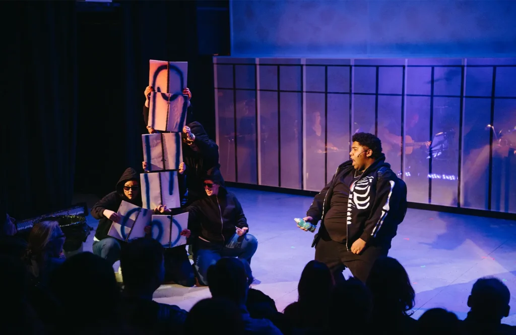 Kuman’s choreographic process focused on developing motifs that reflected the two vastly different worlds within Monoceros: the bleak, rigid high school environment and the imaginative Unicorn Society. “We just got to create from our imaginations, and let our imaginations run wild,” she says.